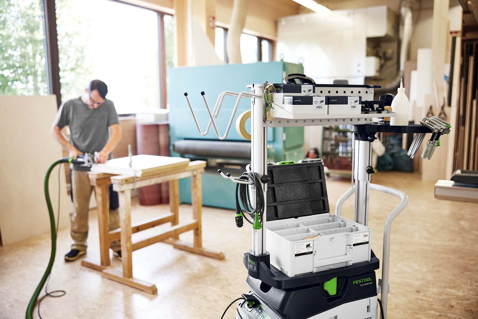 - Kompaktowa i mobilna praca – WCR można połączyć z każdym odkurzaczem mobilnym Festool ze zintegrowanym złączem Systainer (Classic lub T-LOC)