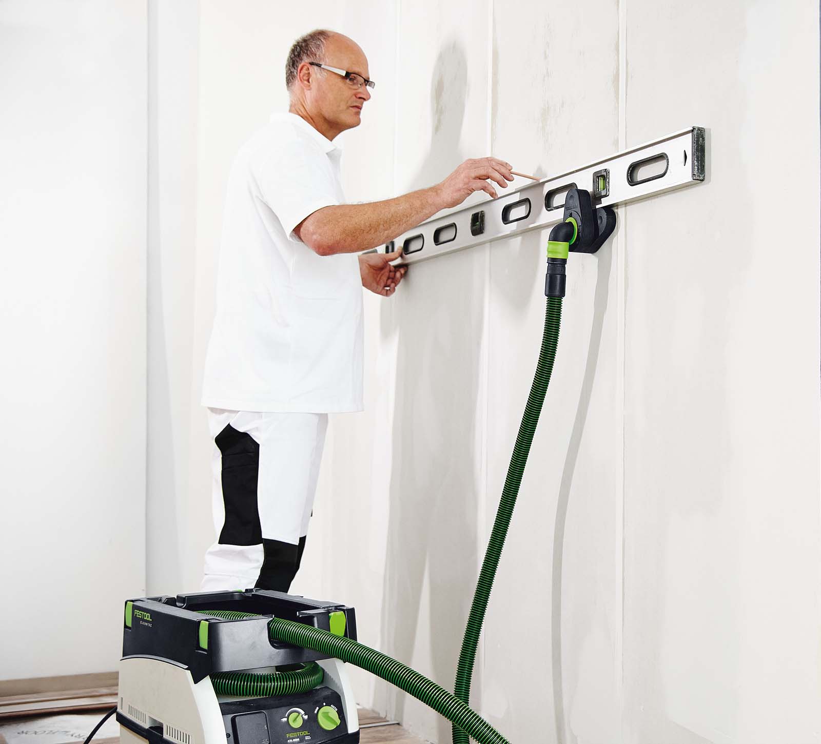- Perfekcja w systemie – w połączeniu z odkurzaczem mobilnym Festool oraz wężem ssącym o średnicy 27 mm lub 27/32 mm