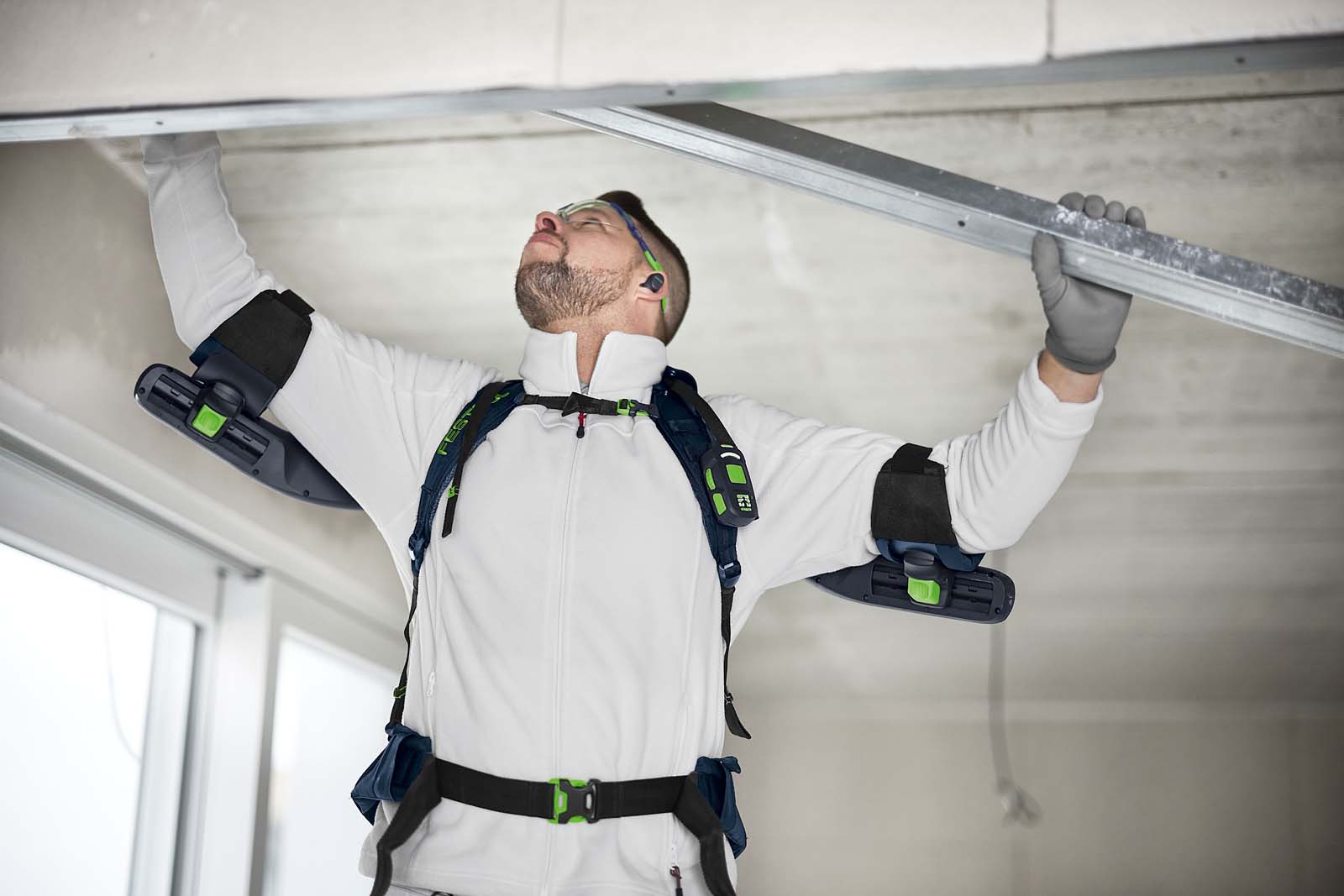 Zastosowanie: Odciążenie podczas pracy przed klatką piersiową i ponad głową – przy sile wsparcia do 5 kg / 50 N na każde ramię|Wspomaga i odciąża podczas pracy z narzędziami, ale także podczas montażu ręcznego lub czynności wykonywanych przy użyciu narzędzi ręcznych