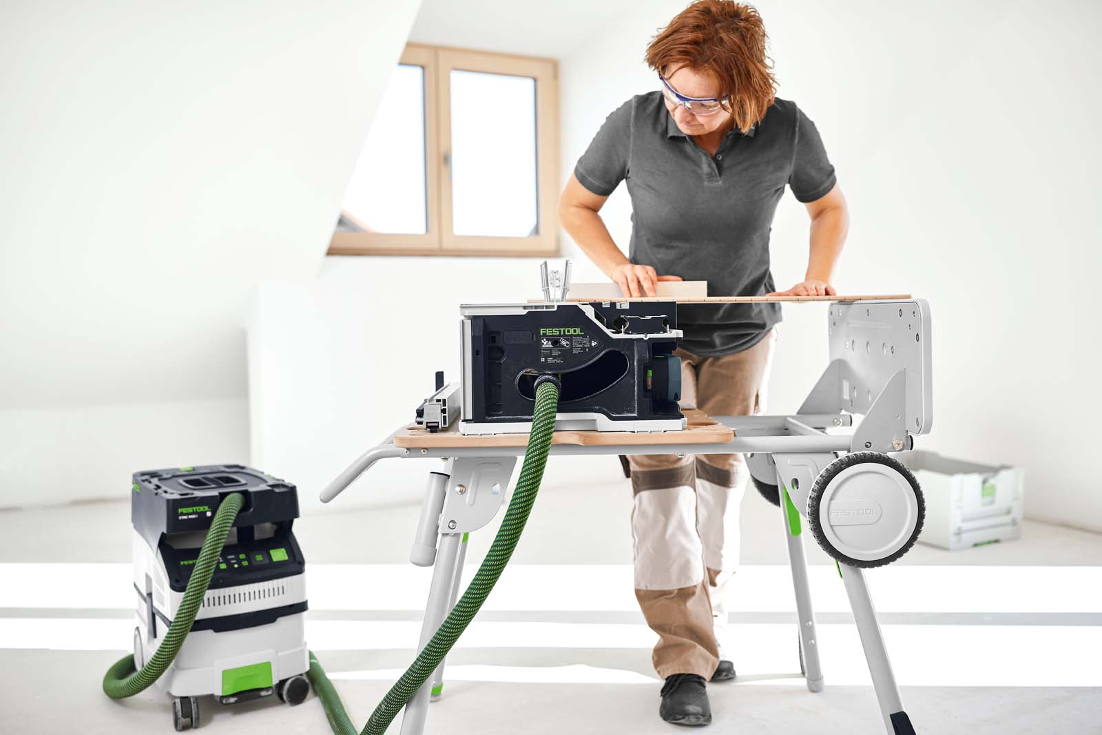 Łatwy transport. Wygodna praca. Idealne w połączeniu z akumulatorową stołową pilarką tarczową CSC SYS 50