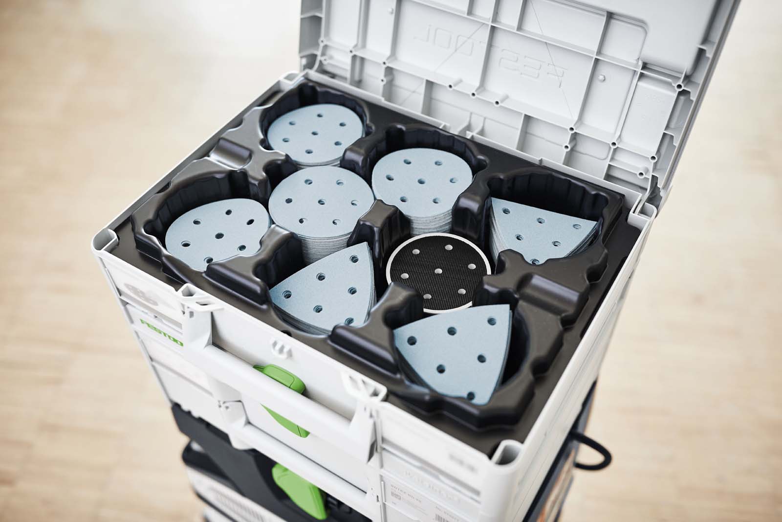 talerz szlifierski FastFix Ø 90 (miękki-HT), stopa szlifierska StickFix V93, Protector, przewód sieciowy plug it (4 m), Systainer SYS3 M 187