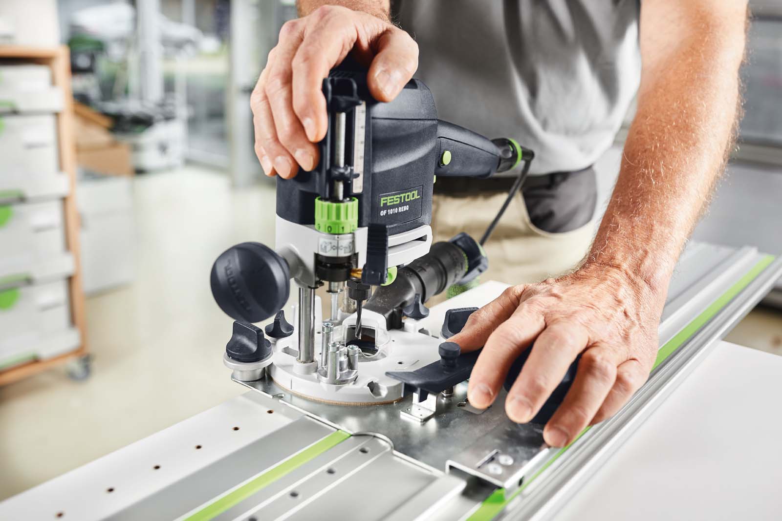Zastosowanie: Do wykonywania rzędu otworów o rozstawie 32 mm, z odpowiednim wyposażeniem|Pewne i absolutnie prostoliniowe prowadzenie maszyny|Zabezpieczenie przeciwodpryskowe: czyste, wolne od wyrw przekroje|Dobre pozycjonowanie dzięki podkładce przyczepnej, nawet na materiałach gładkich|Dodatkowy wpust do mocowania wyposażenia umożliwia jeszcze inne zastosowania