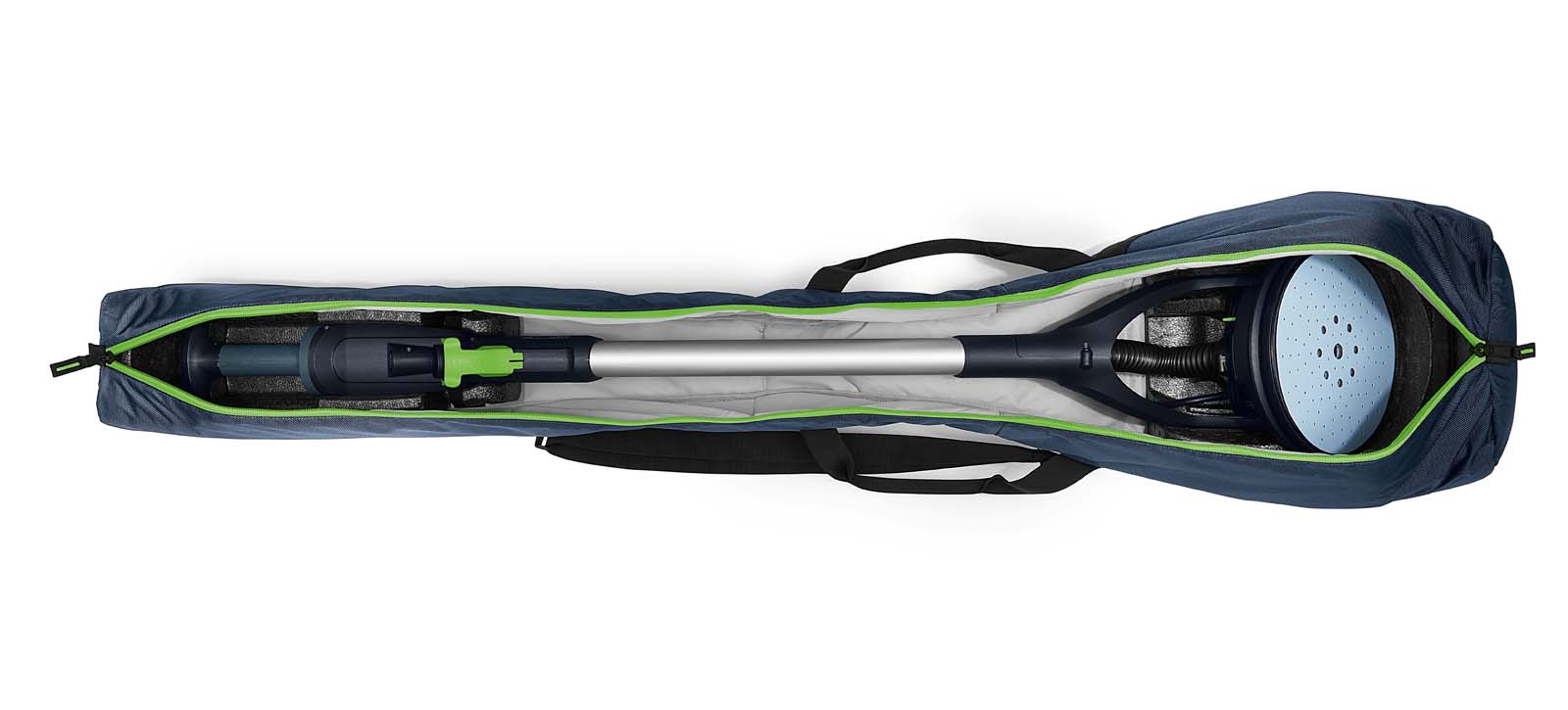 torba transportowa LHS 2-M 225-BAG, pasek z rzepem KV-215 (opakowanie 5 sztuk), klips do węża, talerz szlifierski Ø 220 mm wraz z przekładką, przekładka włącznie z 8 śrubami z tworzywa sztucznego, przewód sieciowy plug it (4 m), odkurzacz mobilny CTL 36 EI AC-PLANEX