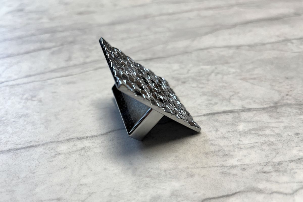 Gałka meblowa GM-400 to elegancki i funkcjonalny element wyposażenia szafek i komód w stylu współczesnym. Starannie wykonane żłobienia zapewniają pewny chwyt i komfort codziennego użytkowania. Wykonana z trwałego stopu cynku i aluminium (ZnAl), cechuje się wysoką odpornością na zarysowania, uszkodzenia oraz korozję.