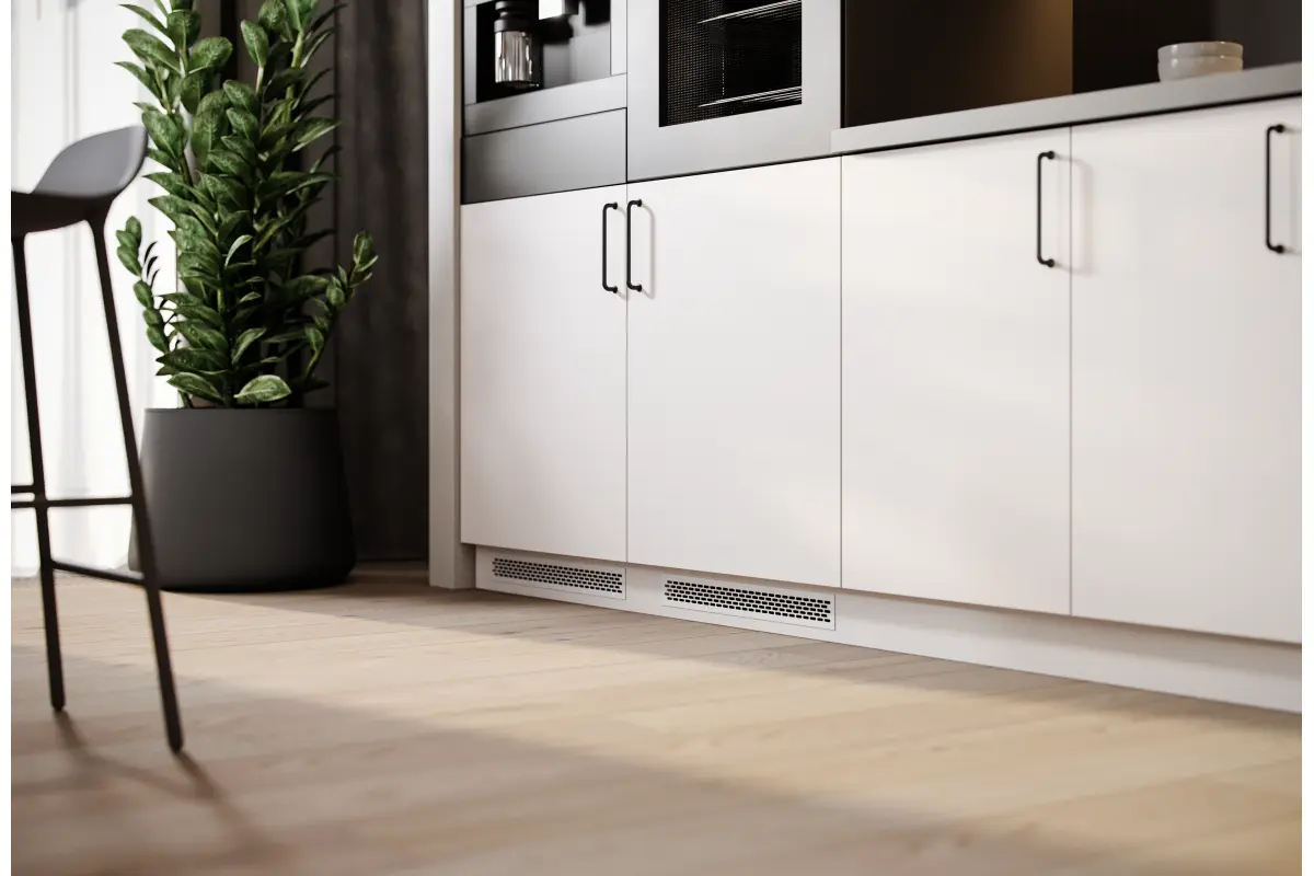 Aluminiowa kratka wentylacyjna dostępna w sześciu popularnych kolorach. Idealna do montażu w zabudowie meblowej w kuchni i łazience, np. przy piekarnikach czy lodówkach. Umożliwia skuteczną cyrkulację powietrza, zapobiegając przegrzewaniu się mebli i gromadzeniu wilgoci w ich strukturze. Kratka przeznaczona jest do instalacji w meblach, ale nie może być używana w ścianach ani w systemach wentylacyjnych.