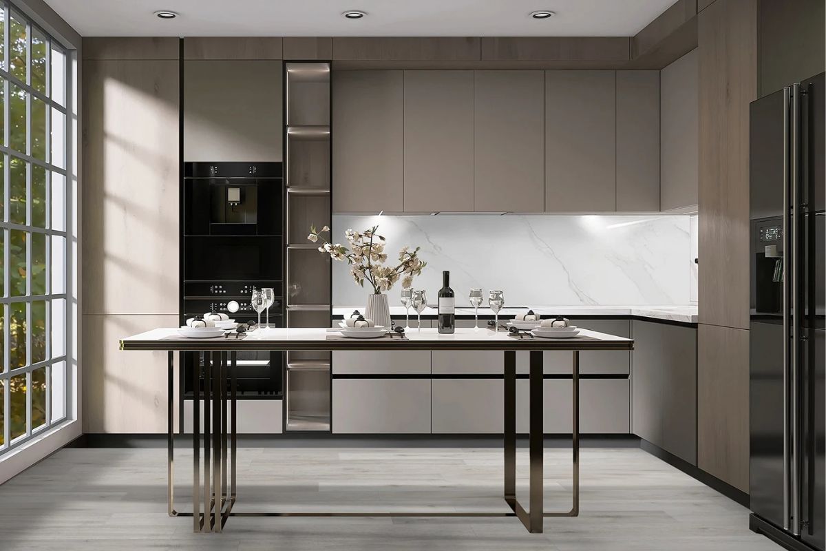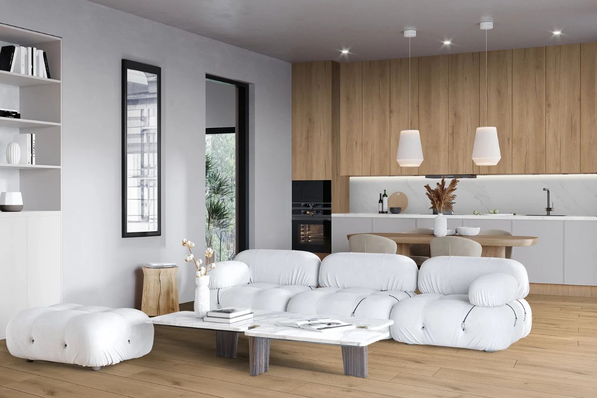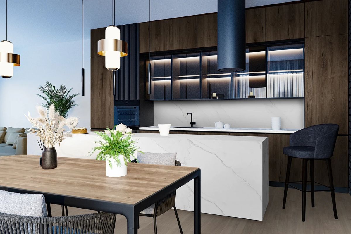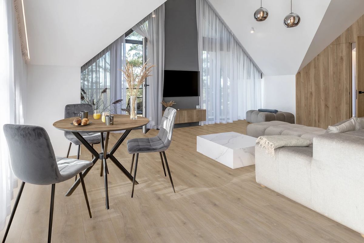 Blaty dostępne są w nowoczesnych dekorach inspirowanych drewnem, kamieniem, betonem oraz jednolitymi, gładkimi kolorami, co ułatwia dopasowanie ich do aktualnych trendów wnętrzarskich.