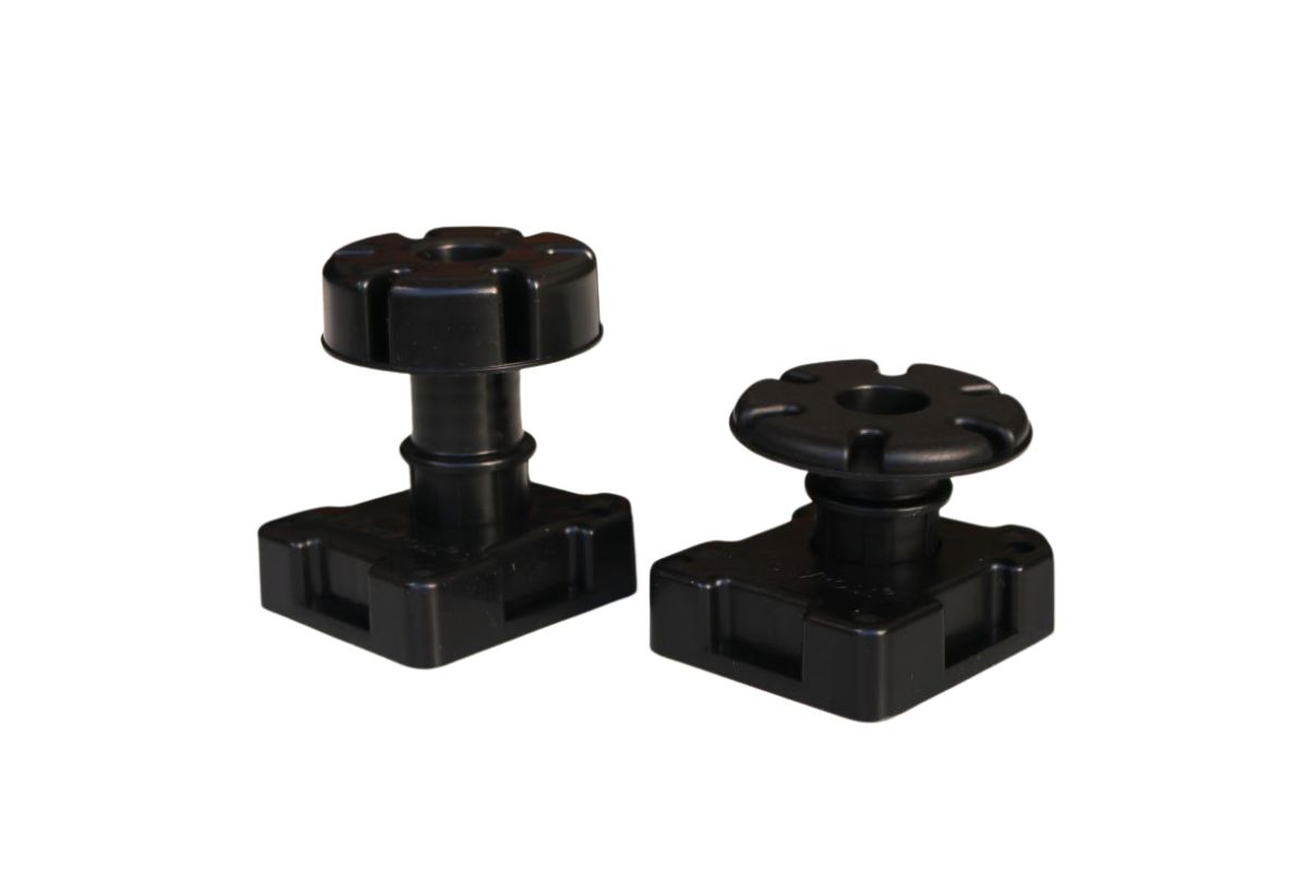 Nóżka regulowana kuchenna, wykonana z tworzywa sztucznego w kolorze czarnym. Dzięki regulowanej konstrukcji pozwala na precyzyjne ustawienie wysokości mebla, co ułatwia poziomowanie szafek i dopasowanie ich do nierównej podłogi.