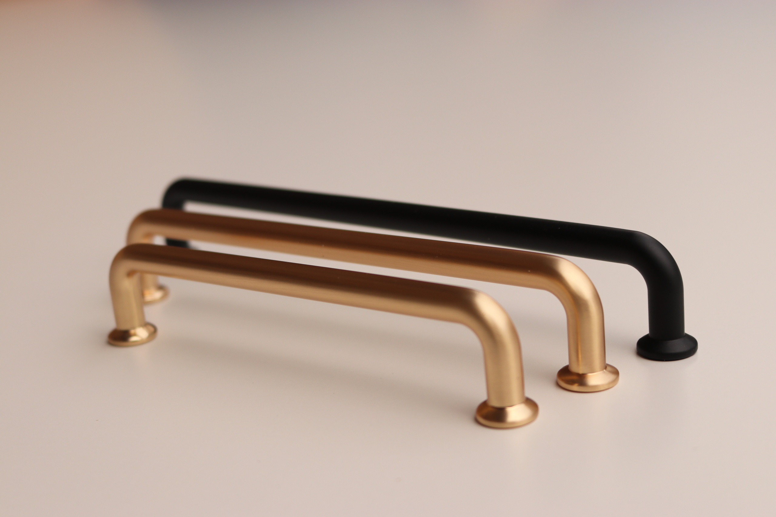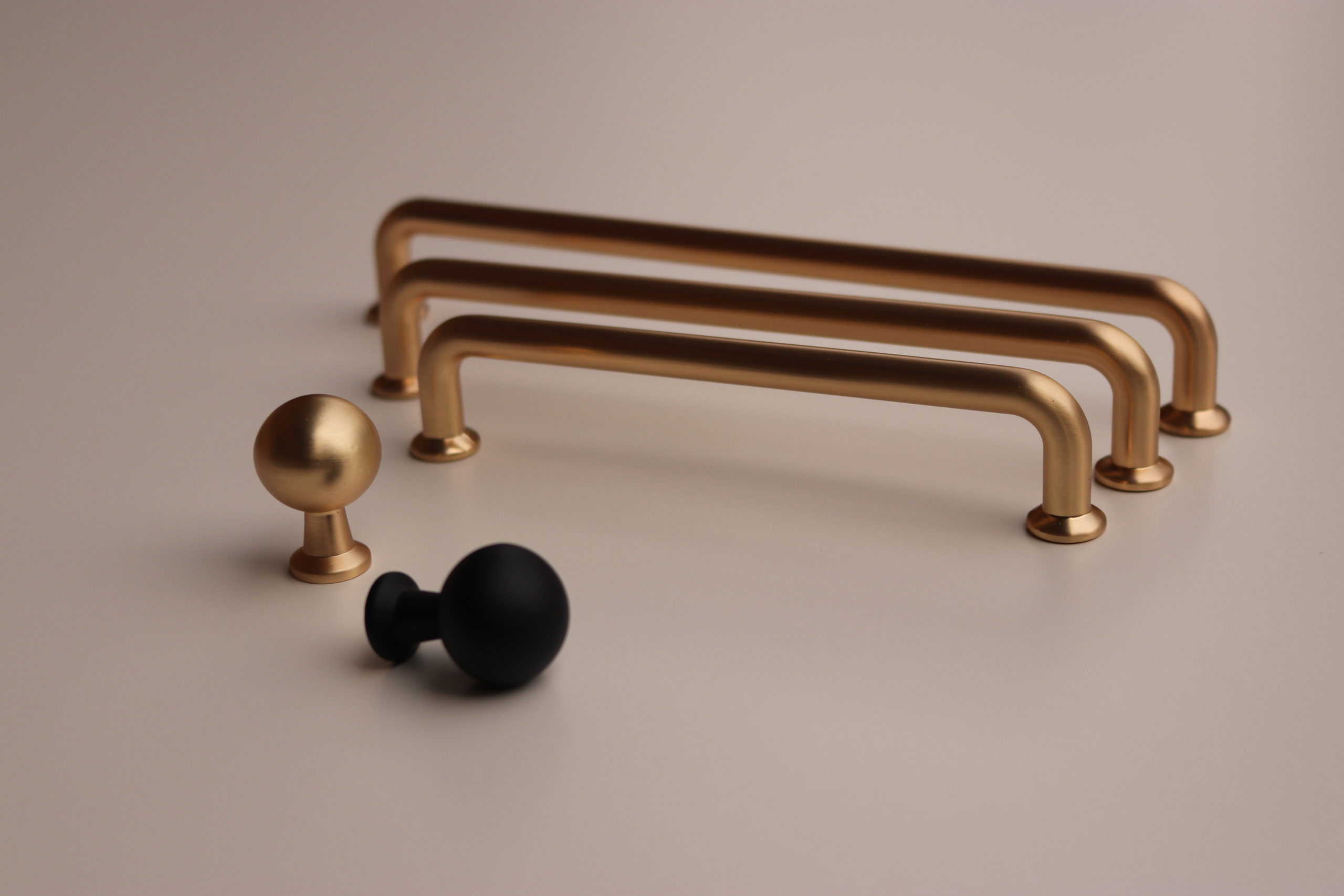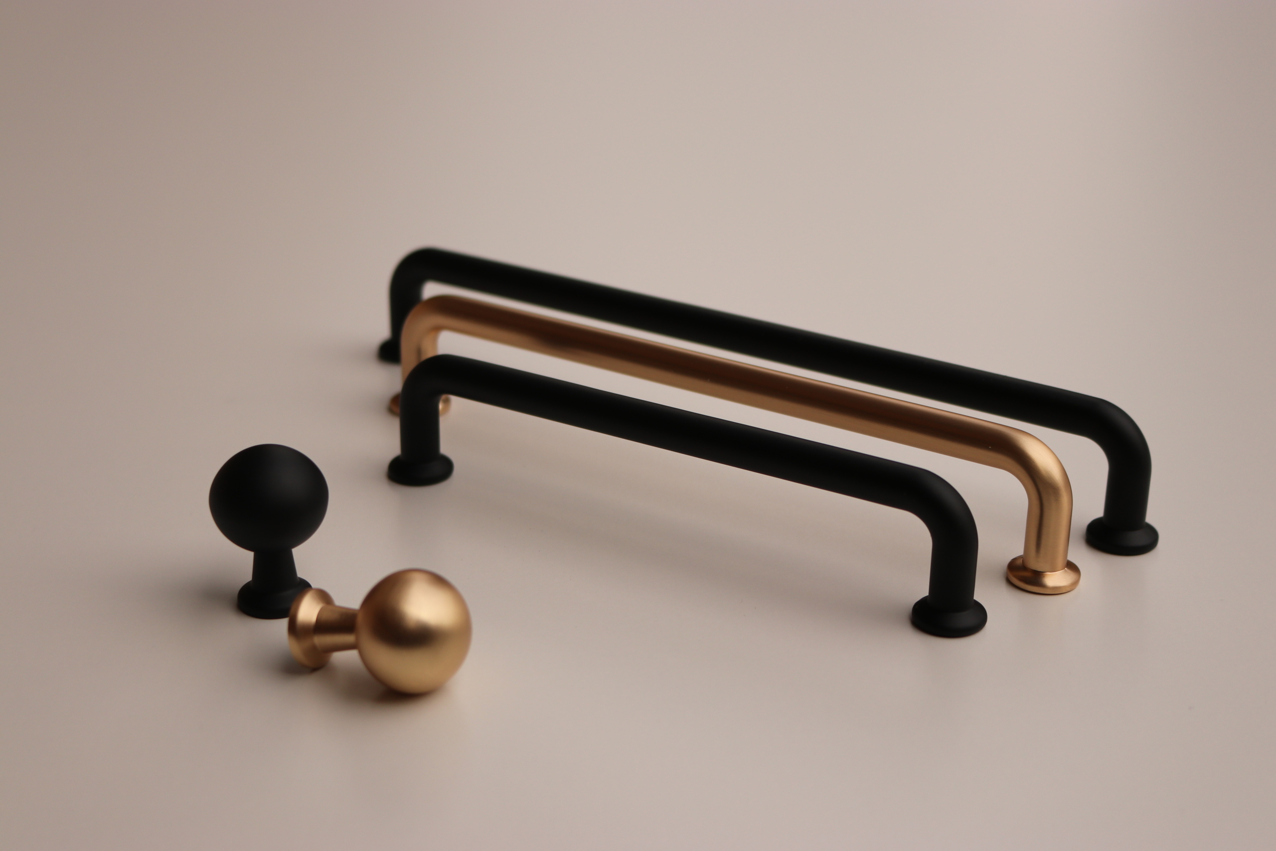 Uniwersalność kolekcji NORD sprawia, że świetnie sprawdzi się w różnych pomieszczeniach – od kuchni i łazienki, przez salon i pokój dzienny, aż po gabinet. Uchwyty dostępne są w trzech modnych wykończeniach: mosiężnym, szczotkowanym złocie oraz czarnym macie, co pozwala dopasować je do różnych aranżacji wnętrz. Co więcej, ich przemyślany design umożliwia montaż zarówno w pionie, jak i poziomie, co czyni je niezwykle wszechstronnym wyborem dla każdego domu.