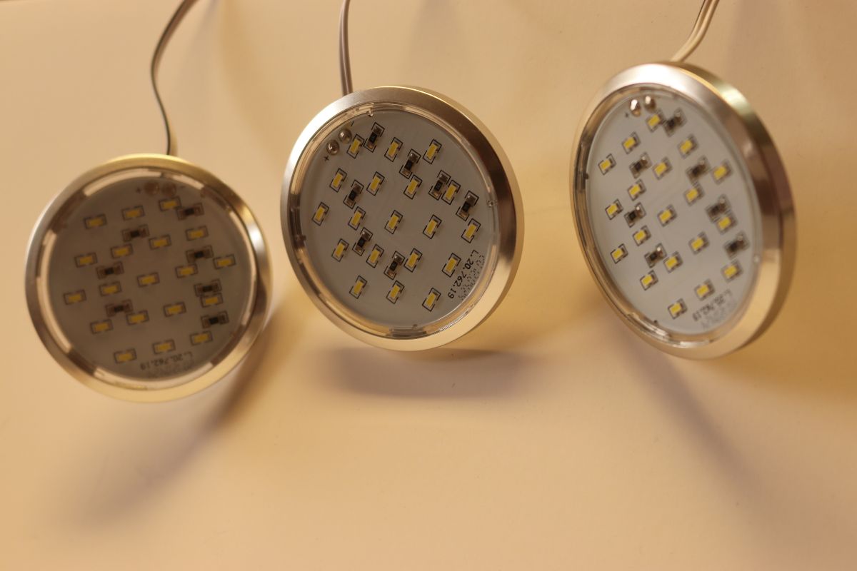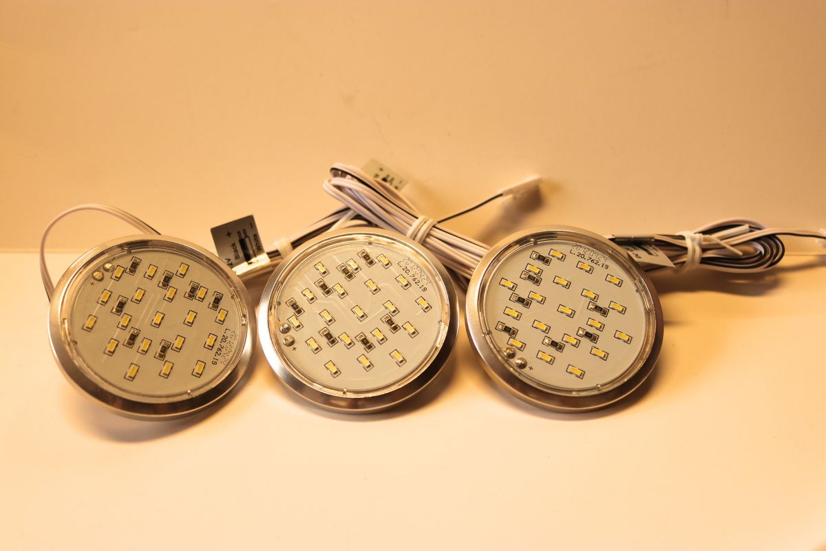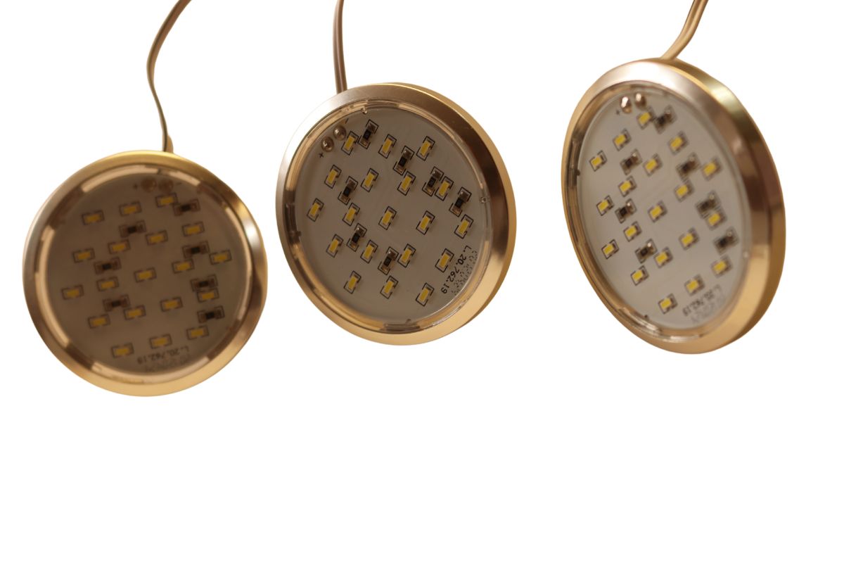- Trzy oprawki z diodami i zarobionymi , gotowymi do podłączenia, kablami