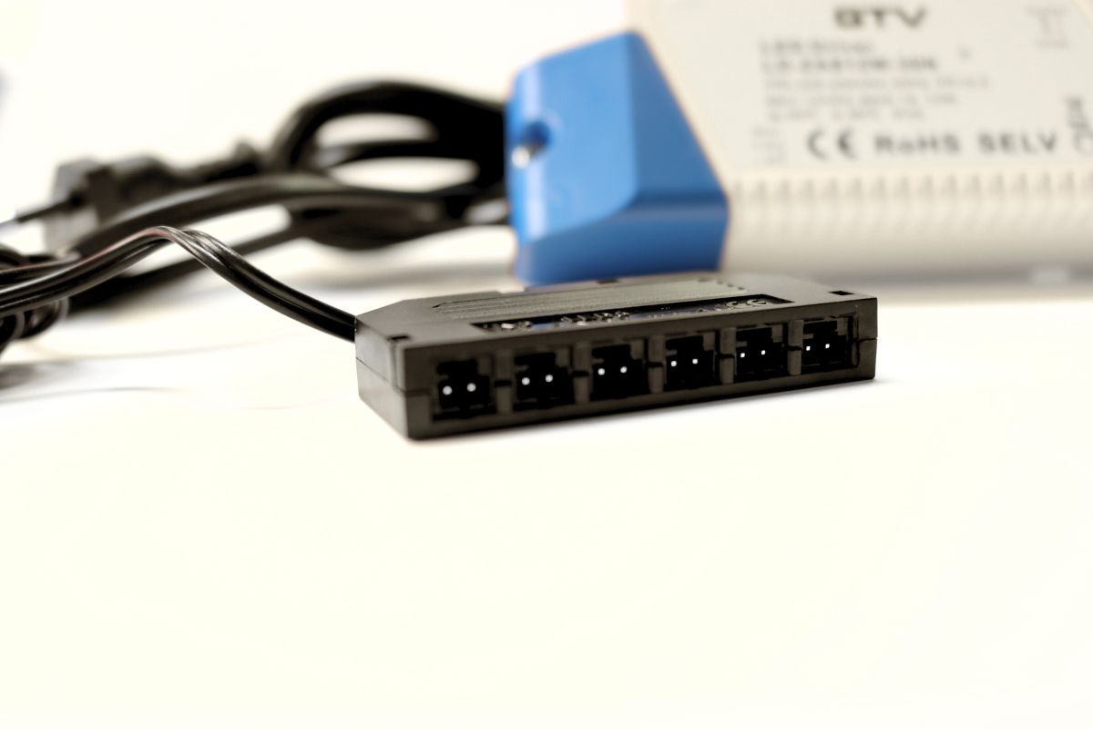 - Złączka do oświetlenia ledowego z 2m kablem AWG24, 6 gniazd