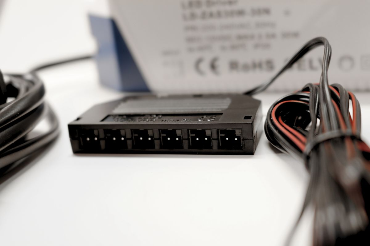 - Złączka do oświetlenia ledowego z 2m kablem AWG24, 6 gniazd